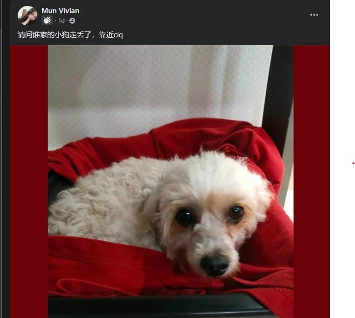 Poodle found at nearby Custom Immigration & Quarantine, JohorFoundJohor Bookmark Write a CommentContact InformationJB CIQ towards Malaysia (lorries), 80300 Johor, MalaysiaLocation Found DateDecember 15, 2022Detailed Information请问谁家的小狗走丢了,靠近ciqNearby Listings within 10 kmSort by: DistanceNewest FirstDog missing at Tmn Desa Cemerlang, JohorMissing DateDecember 13, 2022LostTaman Desa Cemerlang, 81800 Johor, Malaysia 0 km Post navigationPrevious post: Dog found nearby Cheras Checkers Supermarket, KLNext post: Dog found at Kota Permai, Tmn Permai Jaya, Penang